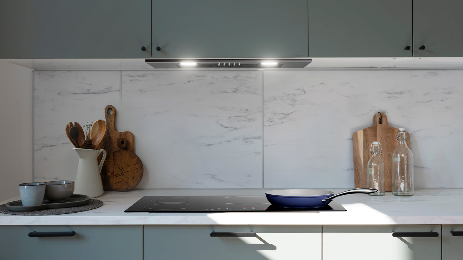 Kitchen Cook Set: Donut Portable Induction Cooktop & 3-Piece Beyond Trio Knife Set & Frying Pan & Portable Range Hood