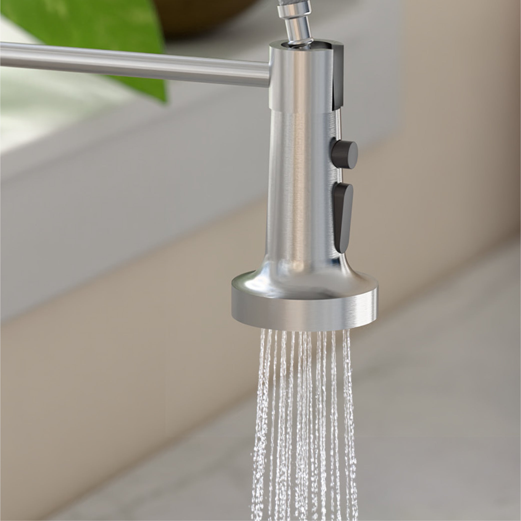 - Versatile Spray Head: The multi-function spray head has modes like STREAM, SPRAY, and PAUSE. Users can switch water flow styles for tasks like rinsing or filling. Stream for regular washing, spray for quick food rinsing or large-surface cleaning, catering to kitchen tasks.