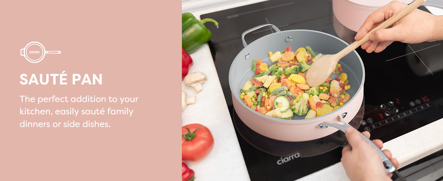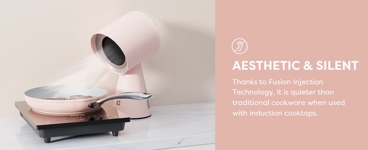 Induction nonstick cookware collection seamlessly collaborates with any induction cooktops, forming an impeccable duo that operates smoothly and emits minimal noise.
