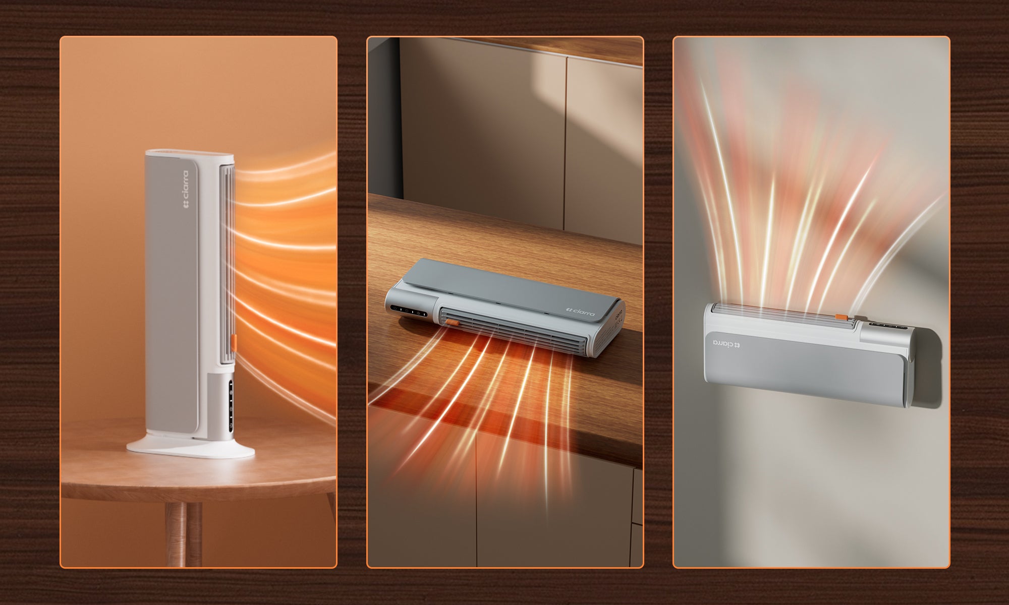⌂ Under-desk | 🖥️ Desktop | 📌 Wall-mounted (Ideal clothes/towel dryer) | 🪑 Free-standing
