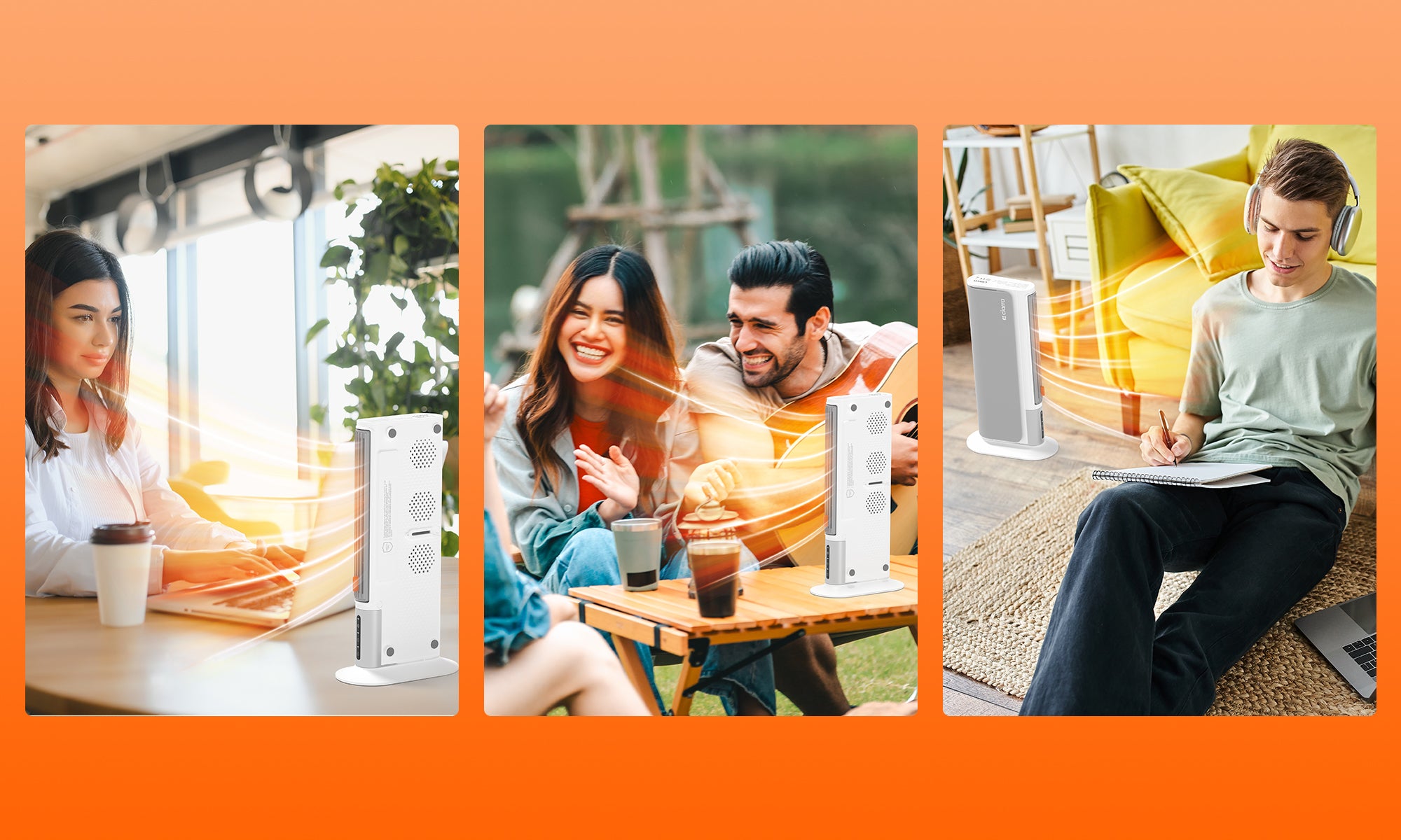 Flexibility for every moment, comfort in every scene — this compact, lightweight bladeless fan & heater adapts effortlessly to your life. Cool your apartment with a refreshing summer breeze, warm your home office on chilly mornings, or bring cozy relief to outdoor adventures and friends’ gatherings. From apartments to offices, from home to travel, it’s your all-season companion for comfort anytime, anywhere.