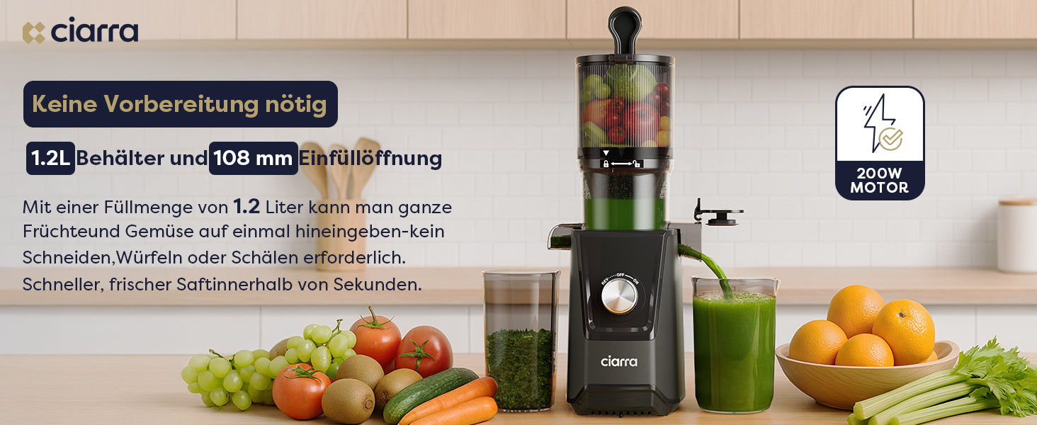 Gadgets Hocheffizienter Slow Juicer, 200W Kaltpress-Entsafter mit 10,8 cm großer Einfüllöffnung für ganzes Obst und Gemüse