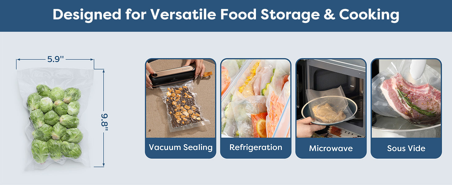 - Heavy - Duty Commercial Storage: Built for durability, Vacuum Sealer Bags have a textured surface to boost suction, trap moisture and form an airtight seal.