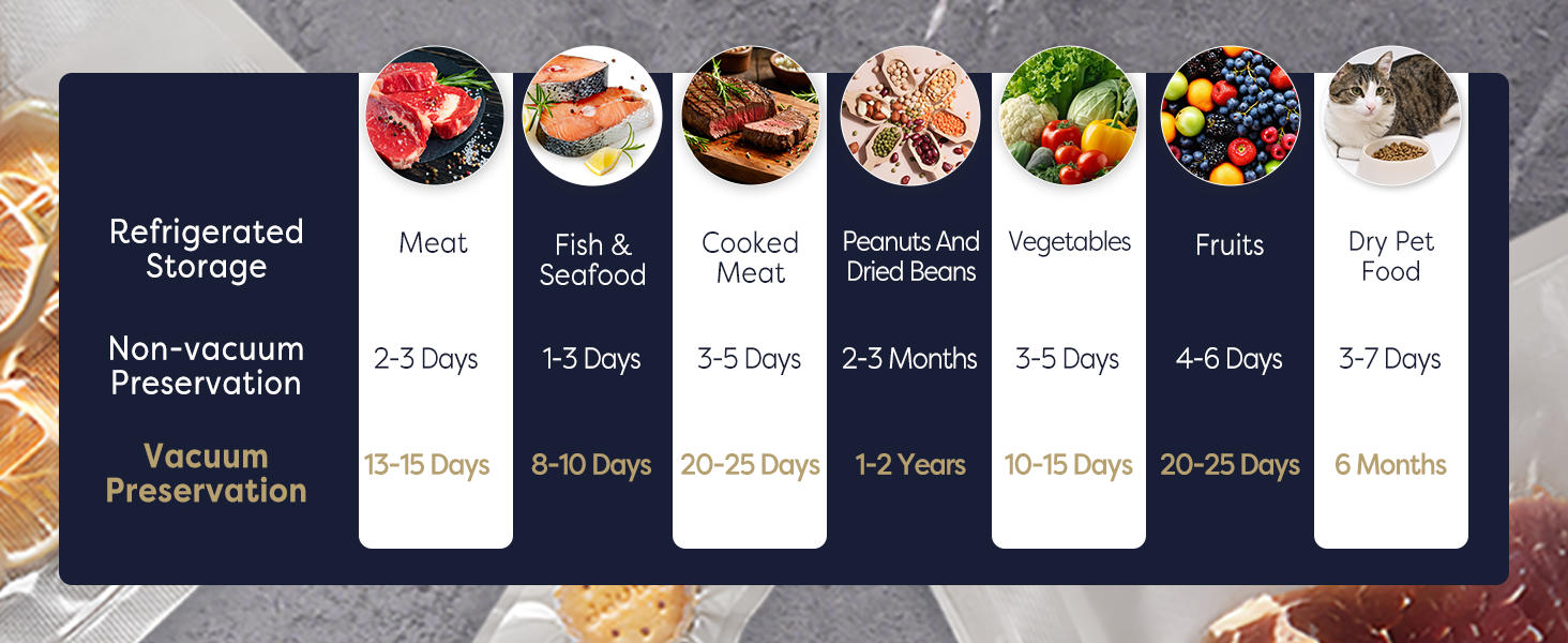 - Vacuum Sealer Bags for Keeping Food Fresh: Lock in nutrients, keep food fresh up to 6 times longer. Slow food spoilage, retain great taste. No more soggy, gritty, wilted fruits and veggies. Keep meats juicy and flavorful.