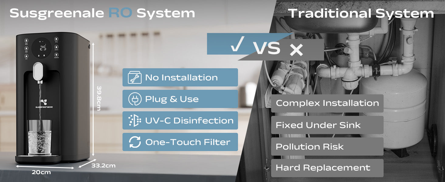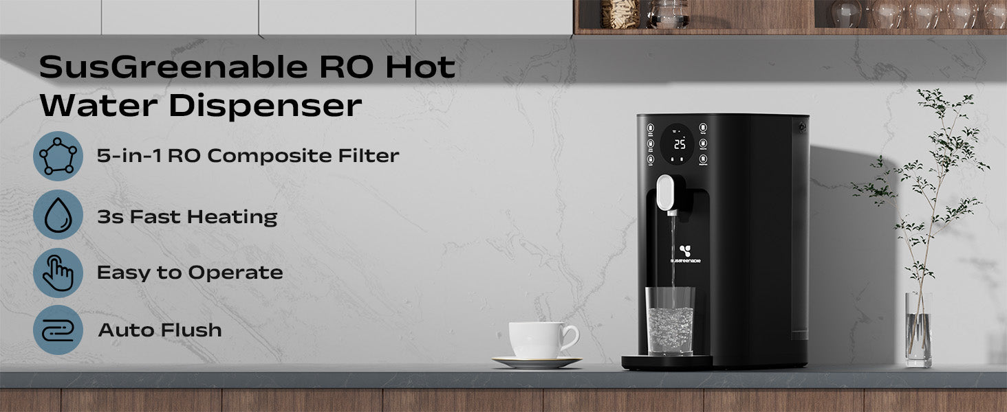Gadgets 5-in-1 RO Hot Water Dispenser with Smart LCD Display – Susgreenable Countertop Osmosis System & Water Filter featuring 3s Instant Heating, 4 Temperature Presets, 4.2L Tank & Eco-Friendly 2:1 Pure-to-Drain Efficiency
