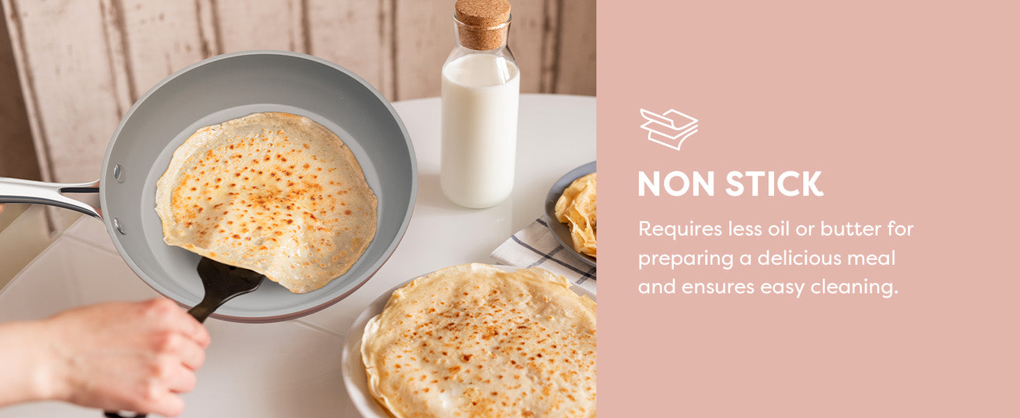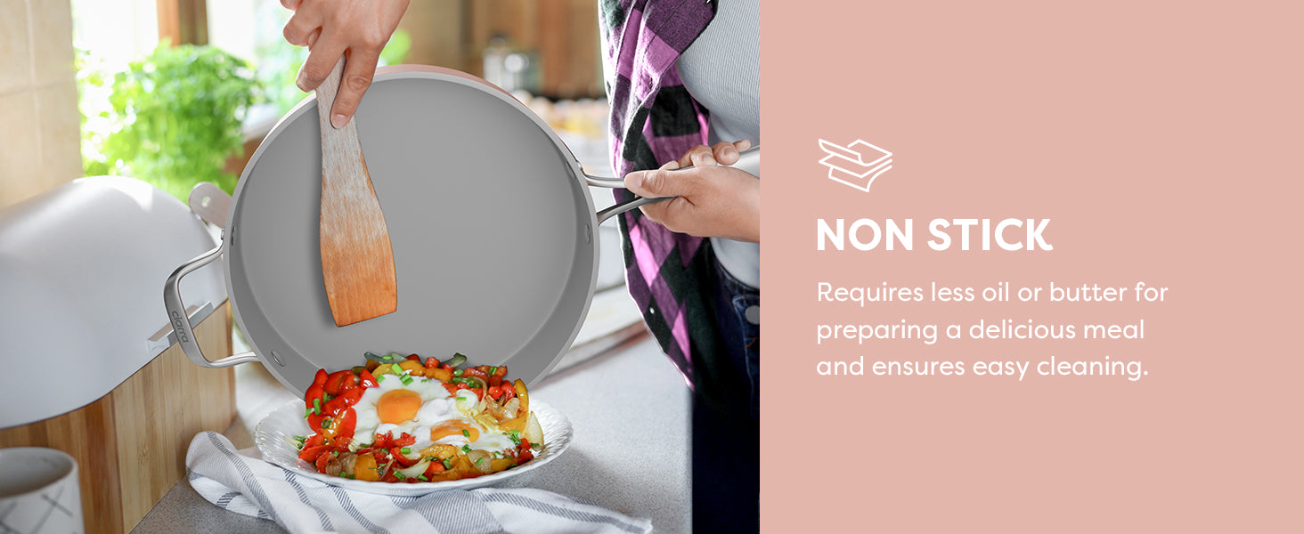 - Ultra Non-Stick Design: Non-stick ceramic coating with smooth surface, perfect for cooking with less oil and provides ultimate food release, perfect for sliding out of the pan eggs, steaks, pancakes, etc.