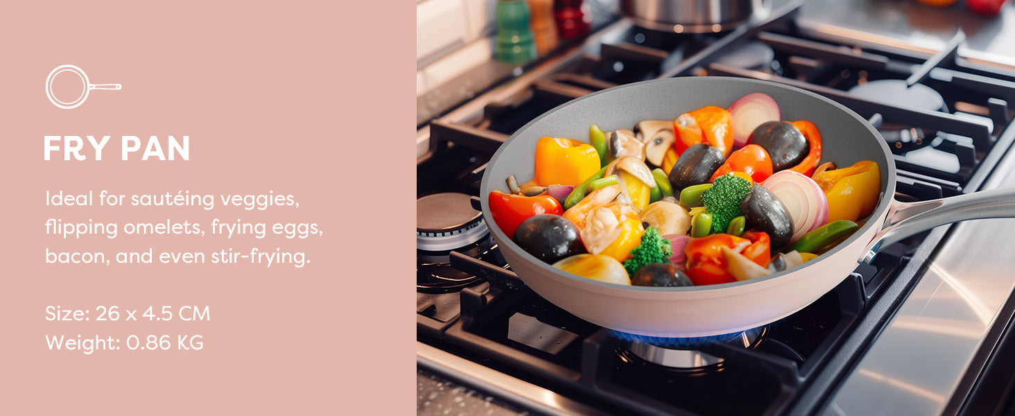 - Non-toxic and healthy cooking: The non-stick frying pan features a ceramic coating free from PTFE, PFOA, and other harmful chemicals, ensuring safety for you, your family, and the environment.