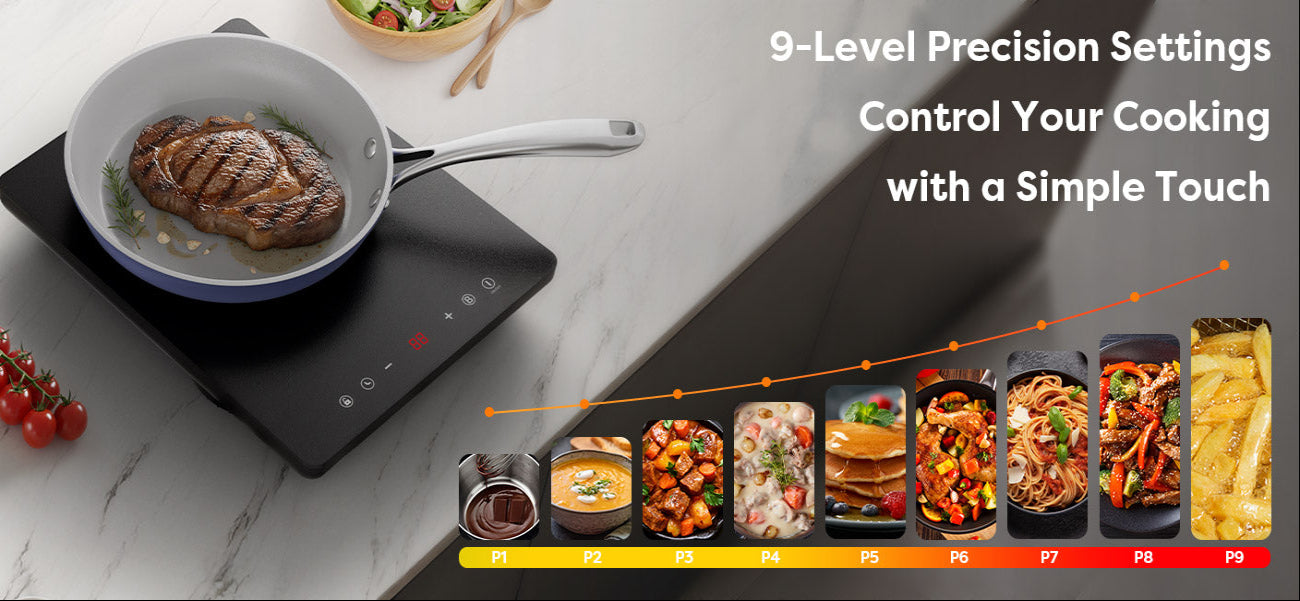 Easily adjust temperature across 9 power levels for perfect results, from gentle simmering to high-heat frying. The responsive touch panel makes operation simple, precise, and intuitive for every meal.