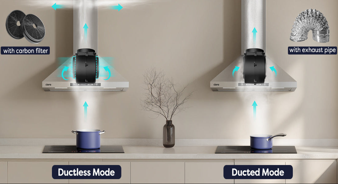 Built for installation flexibility, this range hood supports both ducted and ductless configurations to suit different kitchen setups. Choose ducted venting to expel smoke outdoors, or opt for ductless recirculation with carbon filters—delivering dependable ventilation without being restricted by your space.