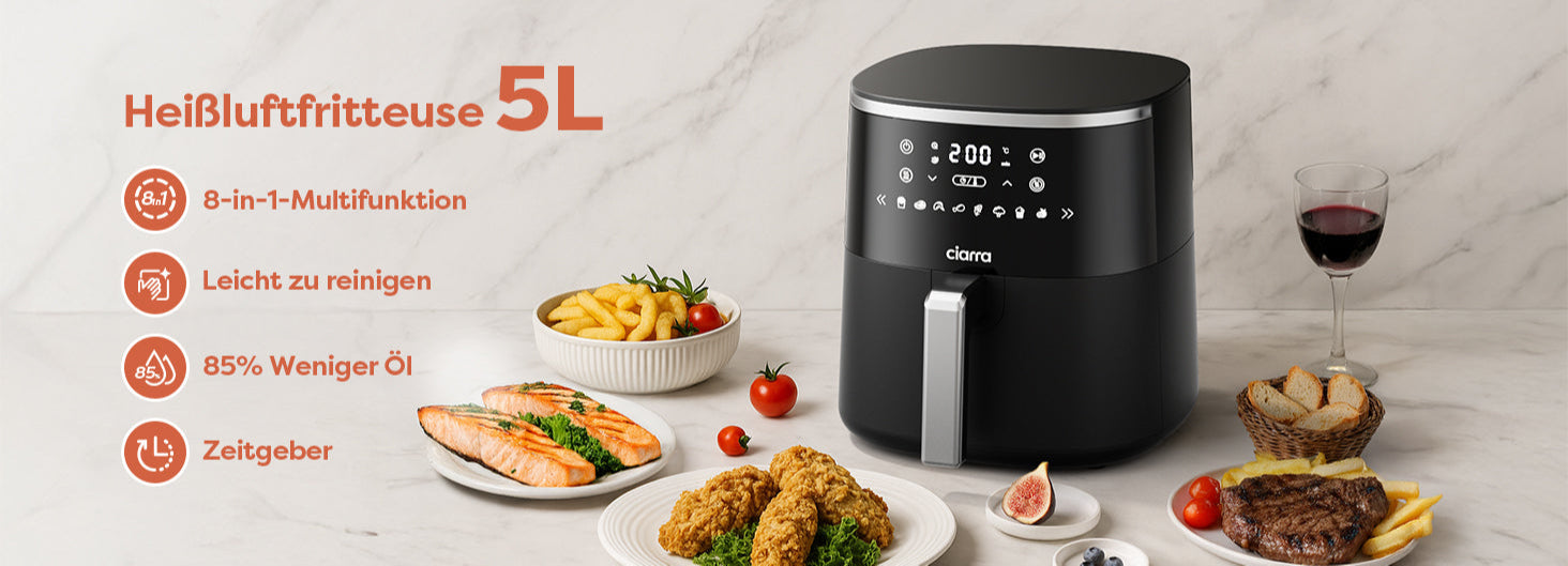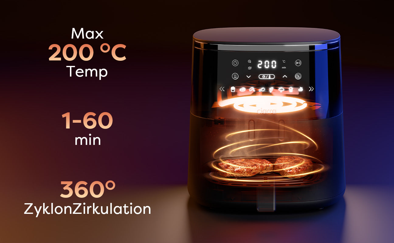 Gadgets 8-in-1 Heißluftfritteuse 5,3 Qt mit antihaftbeschichtetem, spülmaschinenfestem Korb – Fettarme Zubereitung für gesunde, knusprige Speisen