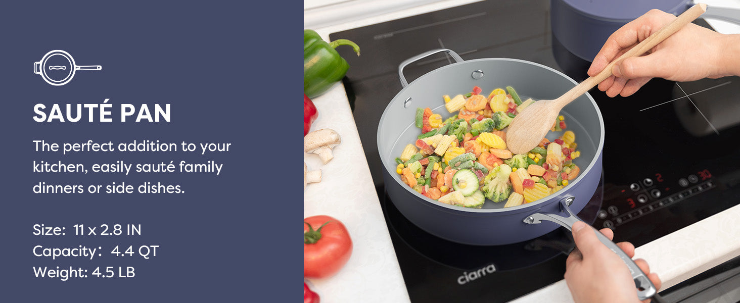 Gadgets Ceramic Nonstick Non-Toxic 4.4 QT Sauté Pan, Kitchen Cooking Pan - Midnight Dream