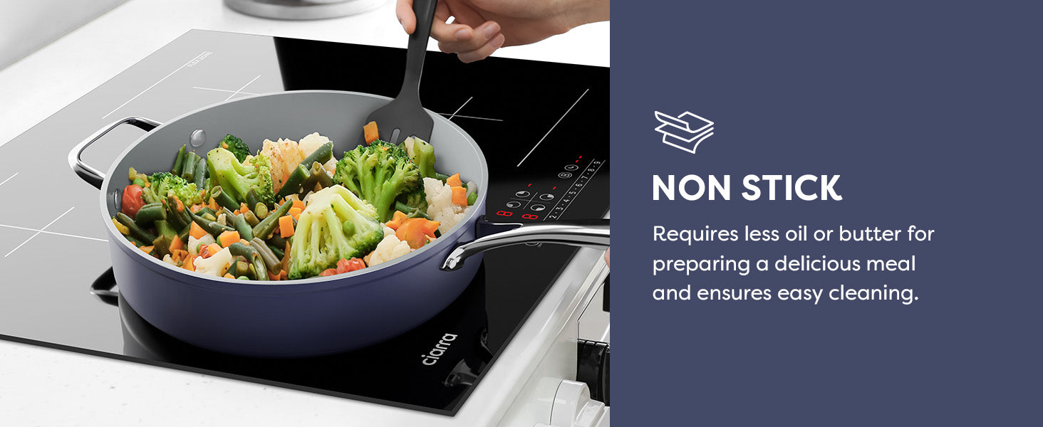 - Non-toxic and healthy cooking: The non-stick frying pan features a ceramic coating free from PTFE, PFOA, and other harmful chemicals, ensuring safety for you, your family, and the environment.