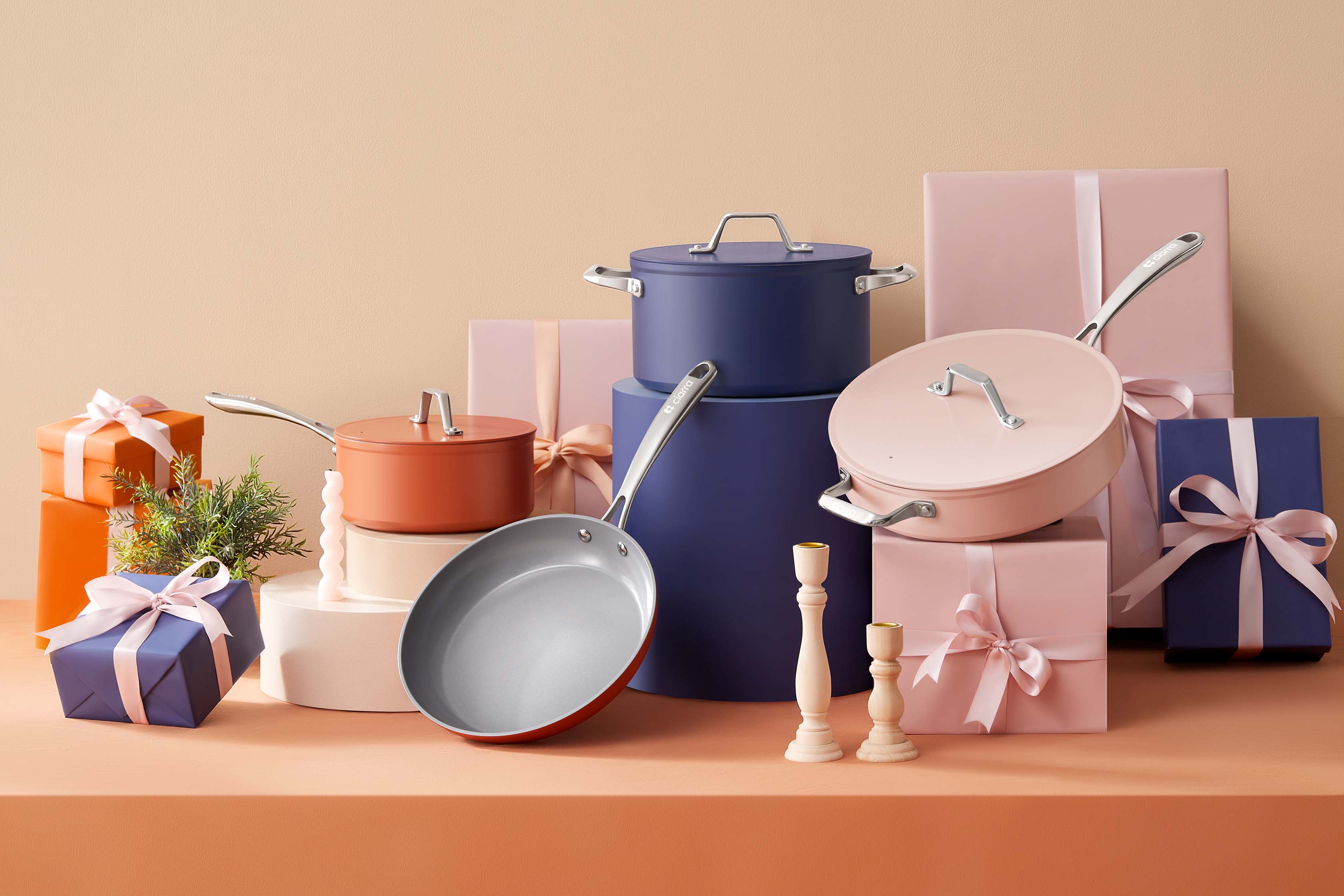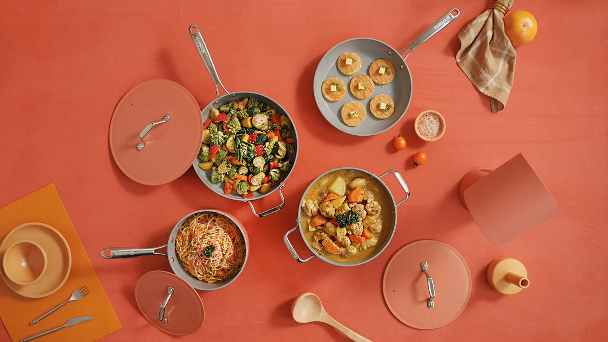 Gadgets Ceramic Nonstick Non-Toxic Induction Cookware Set (4PCS) Includes Sauce Pan, Frying Pan, Dutch Oven, and Sauté Pan - Orangina