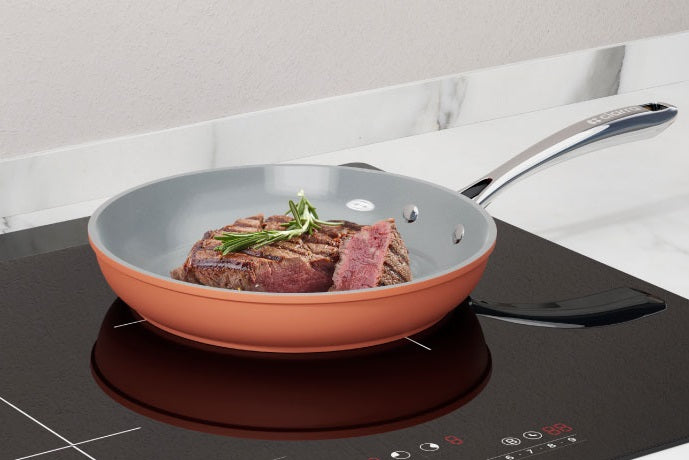 Induction nonstick cookware collection seamlessly collaborates with any induction cooktops, forming an impeccable duo that operates smoothly and emits minimal noise.