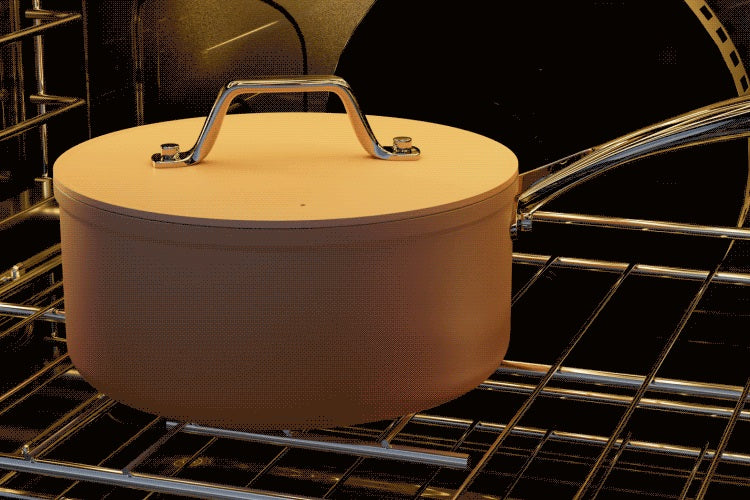 Crafted with a sturdy aluminum body and an iron-sprayed bottom, this cookware guarantees exceptional heat transfer for swift and even cooking. Its oven-safe design can withstand temperatures up to 450℉, unlocking new culinary possibilities.