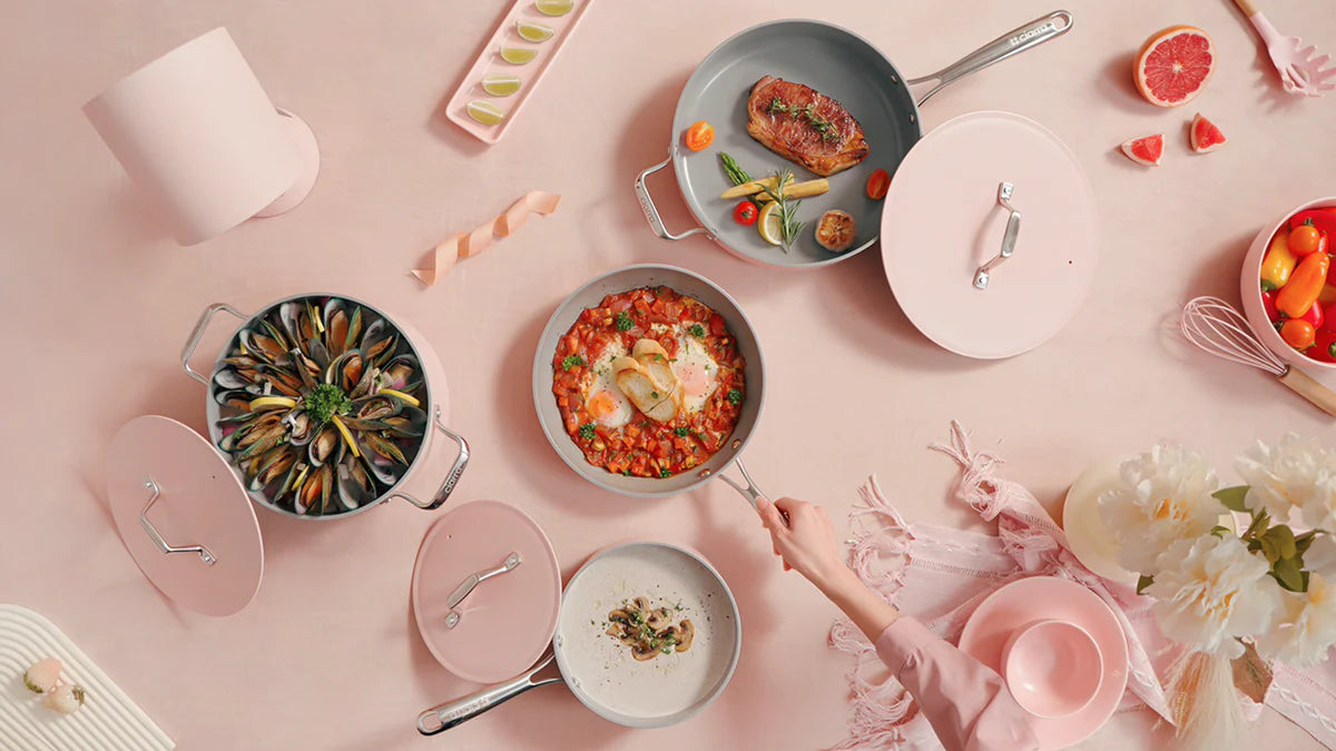 Gadgets Ceramic Nonstick Non-Toxic Induction Cookware Set (4PCS) Includes Sauce Pan, Frying Pan, Dutch Oven, and Sauté Pan - Sakura Candy