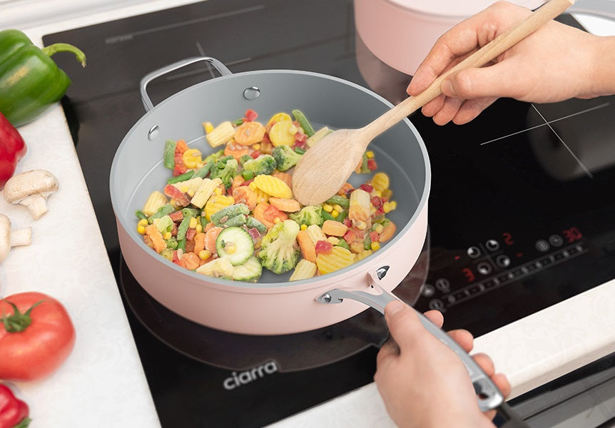 Induction nonstick cookware collection seamlessly collaborates with any induction cooktops, forming an impeccable duo that operates smoothly and emits minimal noise.