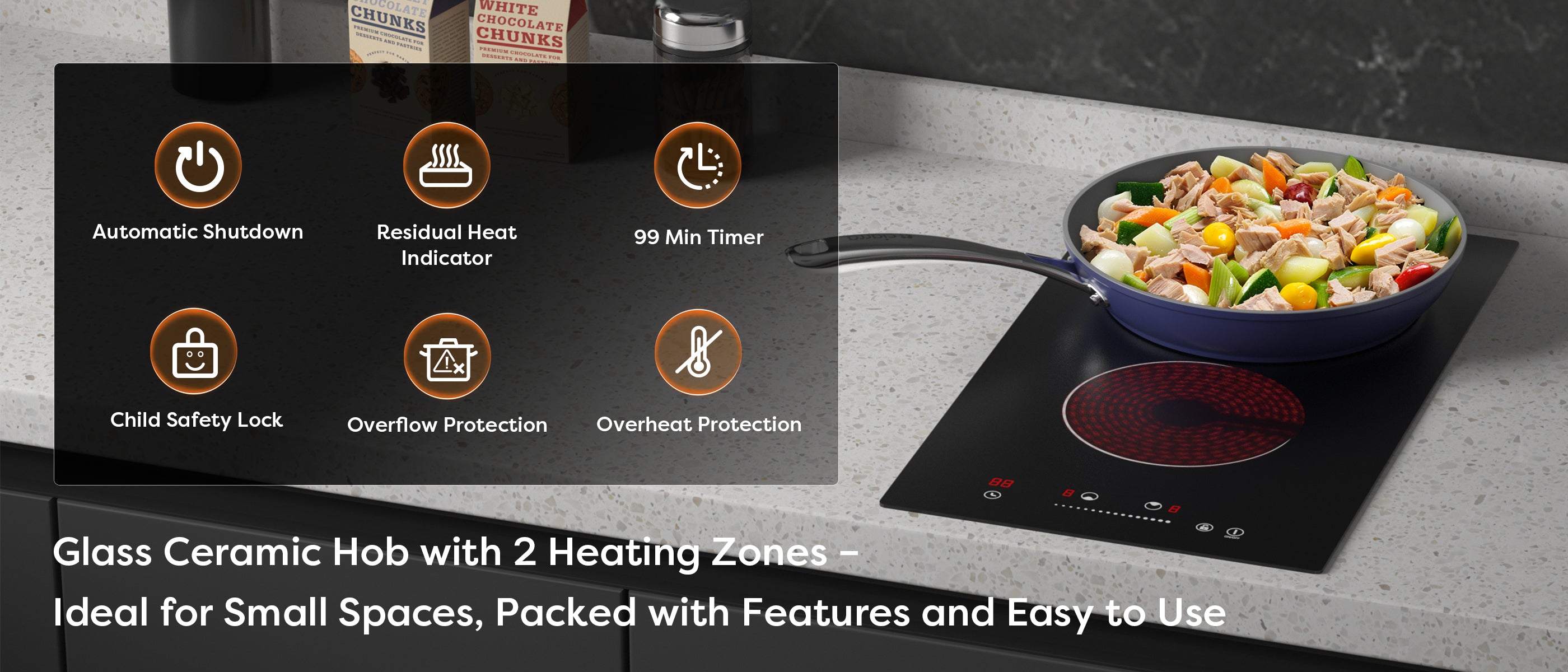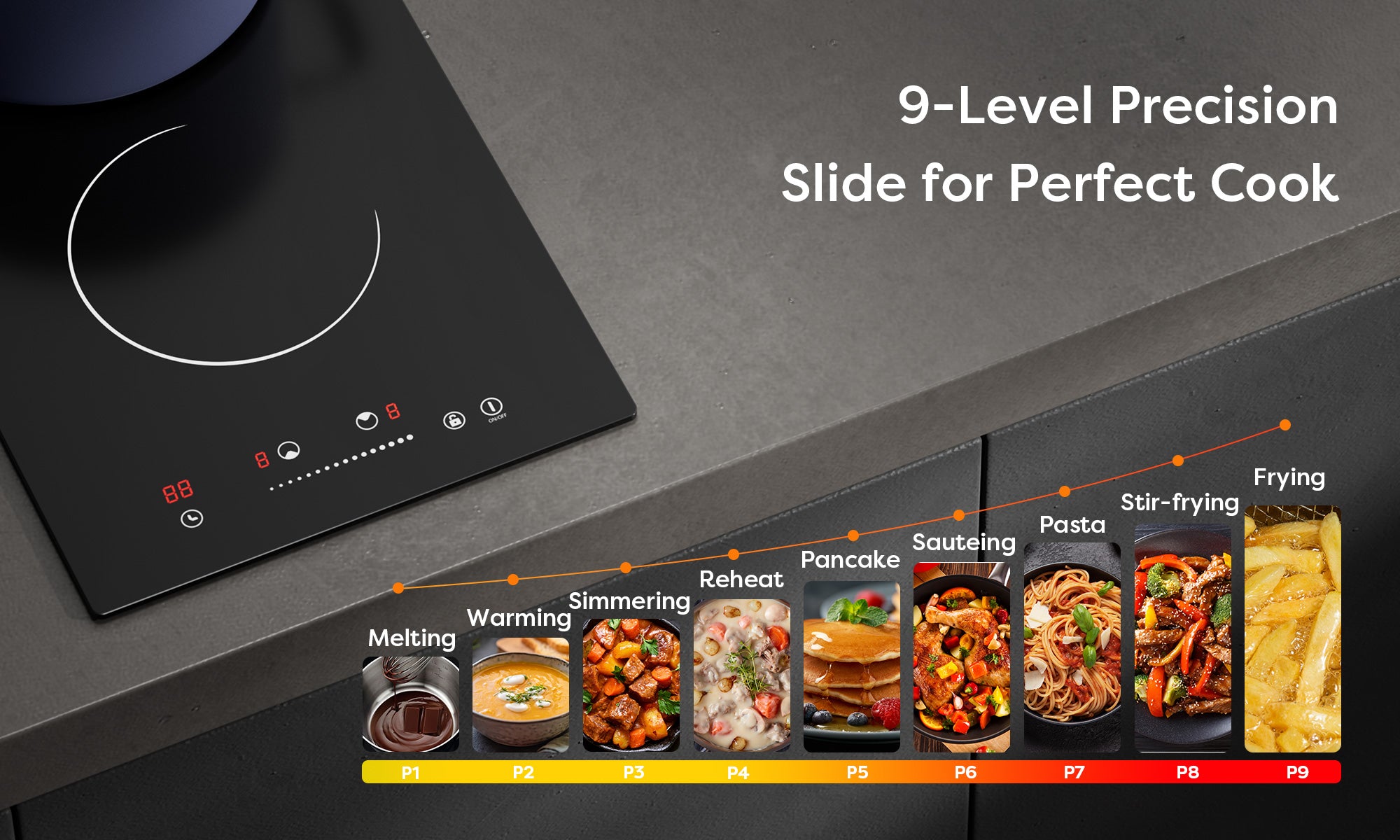 Gadgets Kitchen Cook & Go Trio : Donut Induction Cooktop & HOOD TO GO & Fry Pan - Orangina