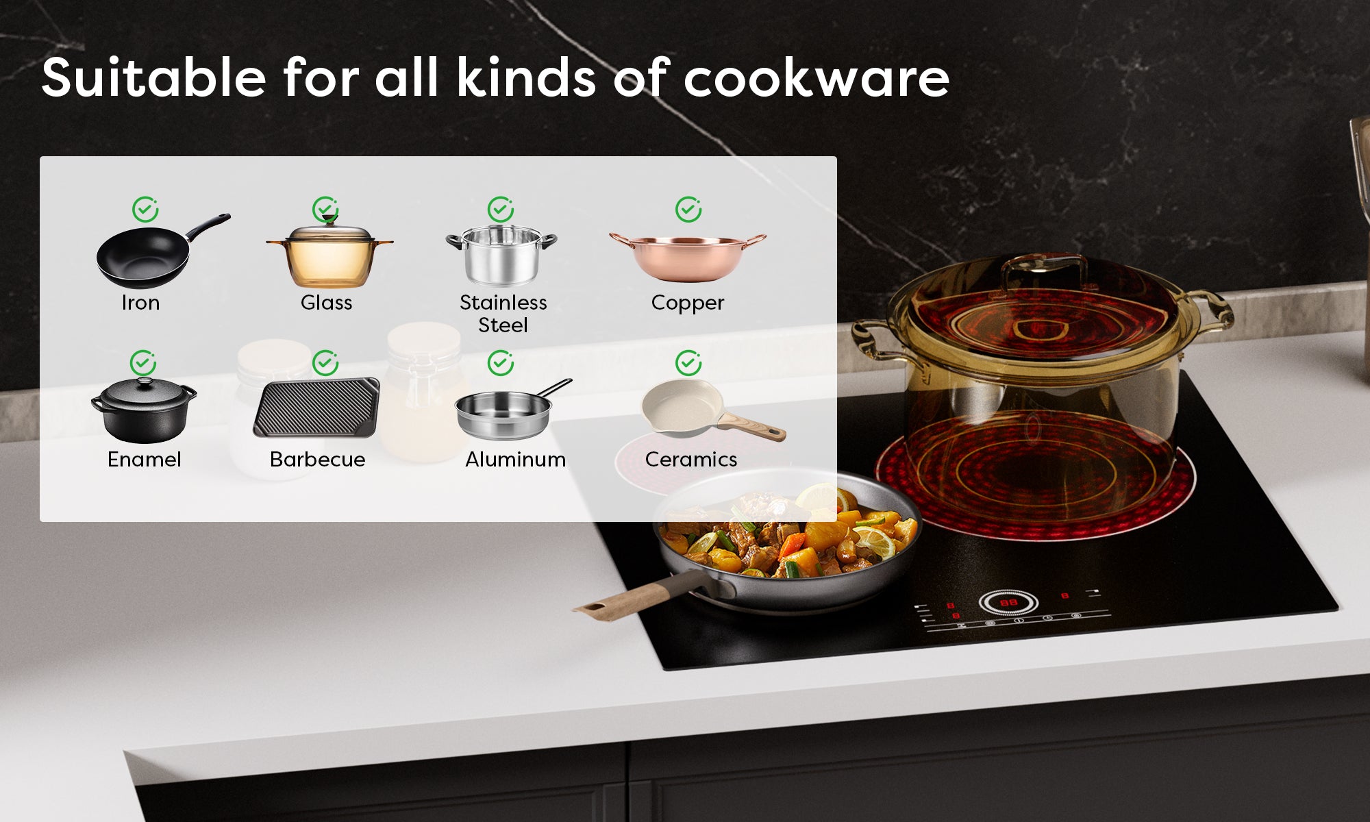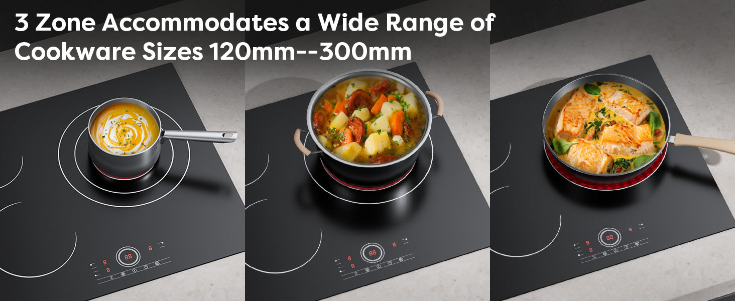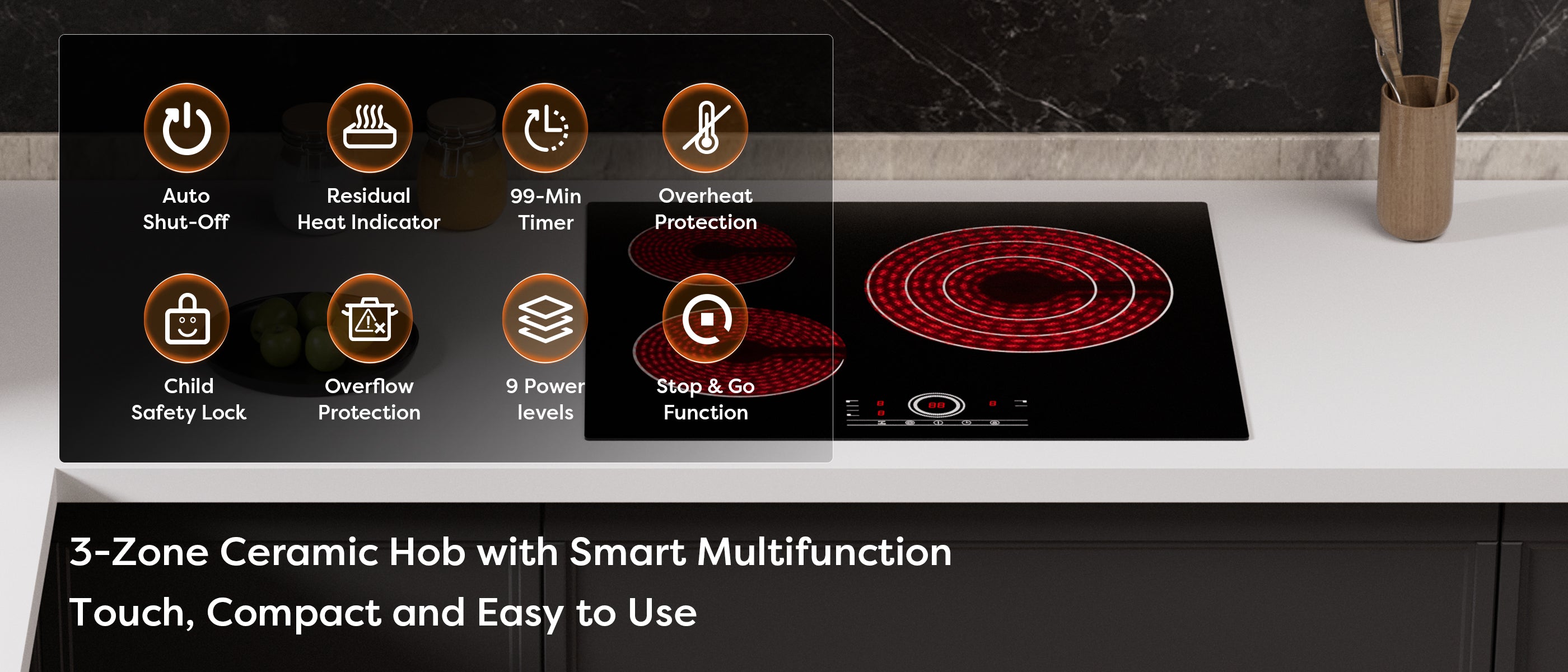 Gadgets 60cm Black 3-Zone Electric Hob Built-In Glass Ceramic Hob, 5600W Electric Cooktop – Touch Control, 9 Power Levels, 99-Minute Timer, Auto Shut-Off, Child Lock, Residual Heat Indicator, Universal Pan Compatibility, Safe & Easy to Clean