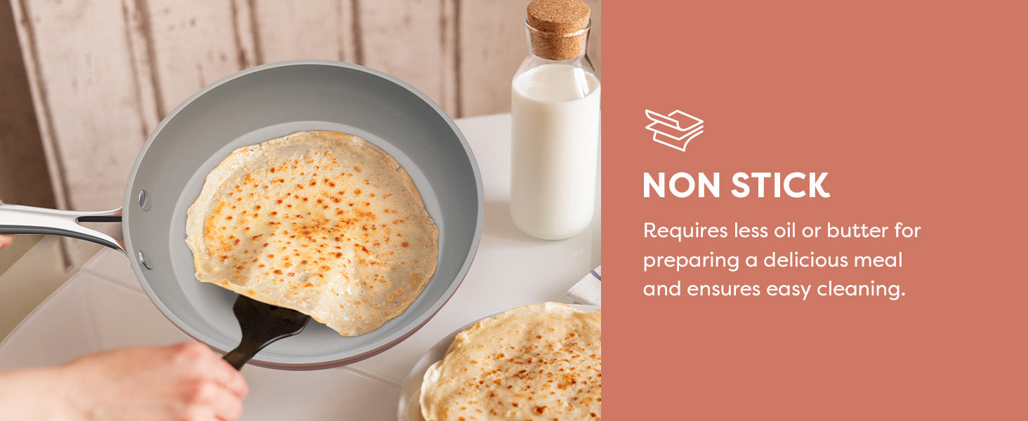 - Ultra Non-Stick Design: Non-stick ceramic coating with smooth surface, perfect for cooking with less oil and provides ultimate food release, perfect for sliding out of the pan eggs, steaks, pancakes, etc.