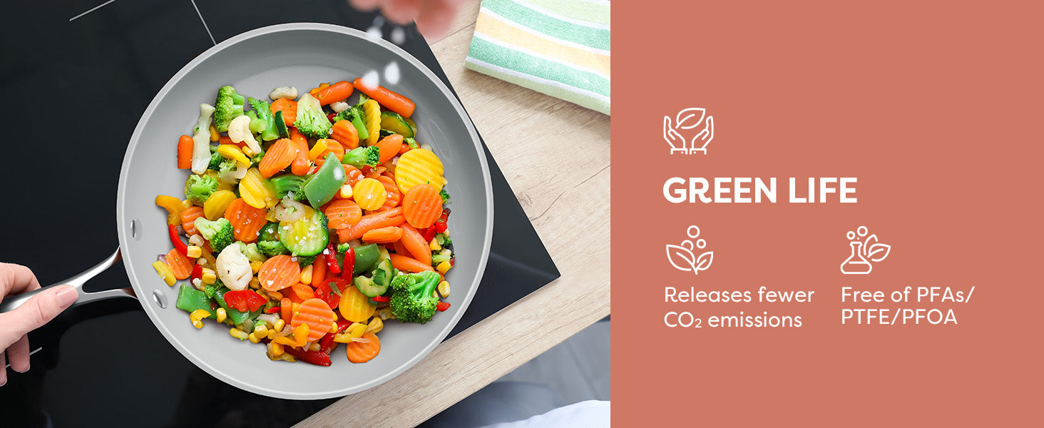 - Non-toxic and healthy cooking: The non-stick frying pan features a ceramic coating free from PTFE, PFOA, and other harmful chemicals, ensuring safety for you, your family, and the environment.