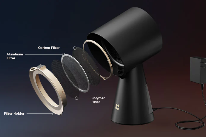 The polymer filter and aluminum filter are dishwasher-safe to provide you with the easiest purification possible. portable kitchen air cleaner is coming with a large capacity oil collecting cup and now is the time to say goodbye to grease buildup that is difficult to get rid of. Thanks to our upgraded recycled ABS material, you will know how easy it is to just wipe off any stain on this super duper durable little guy.